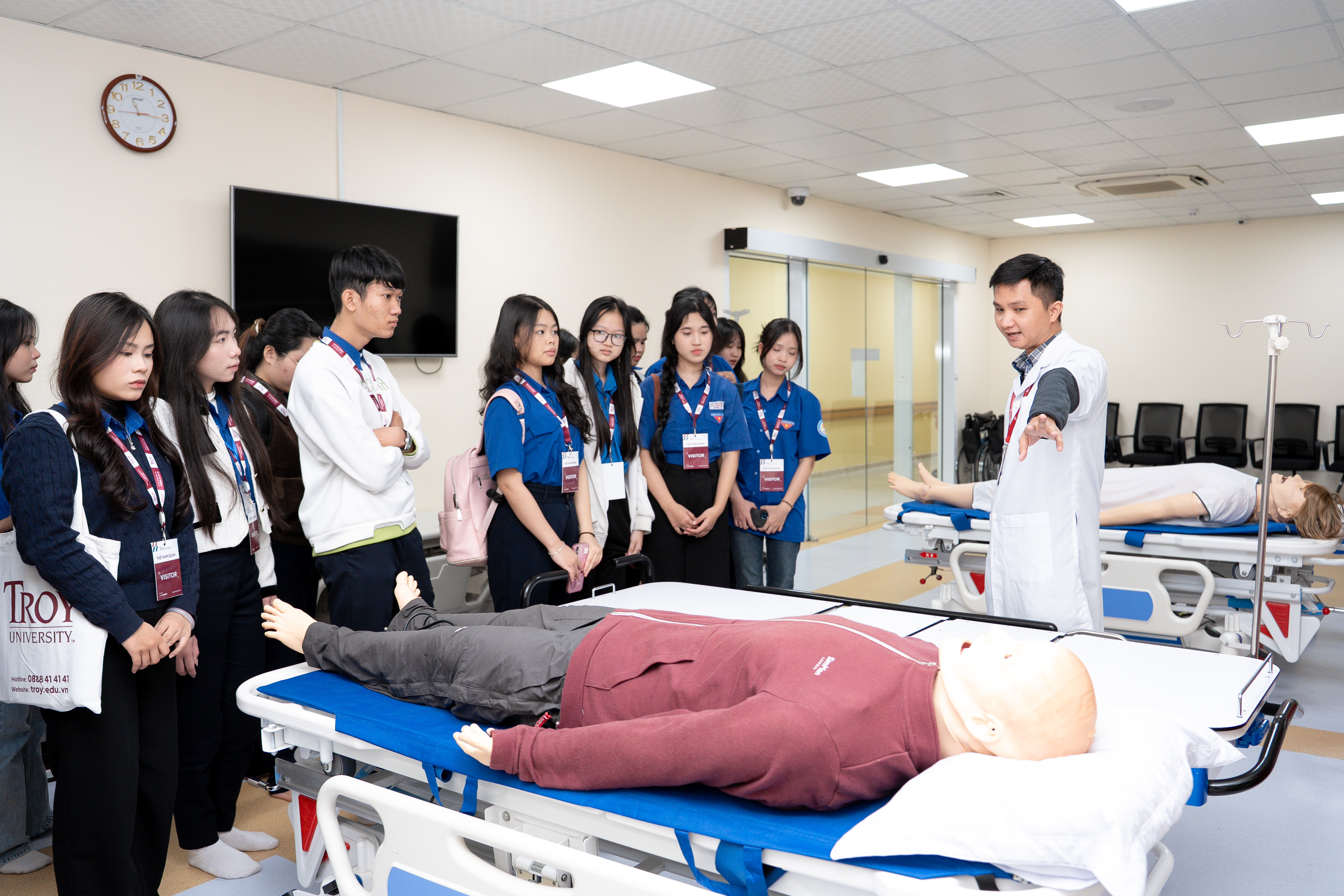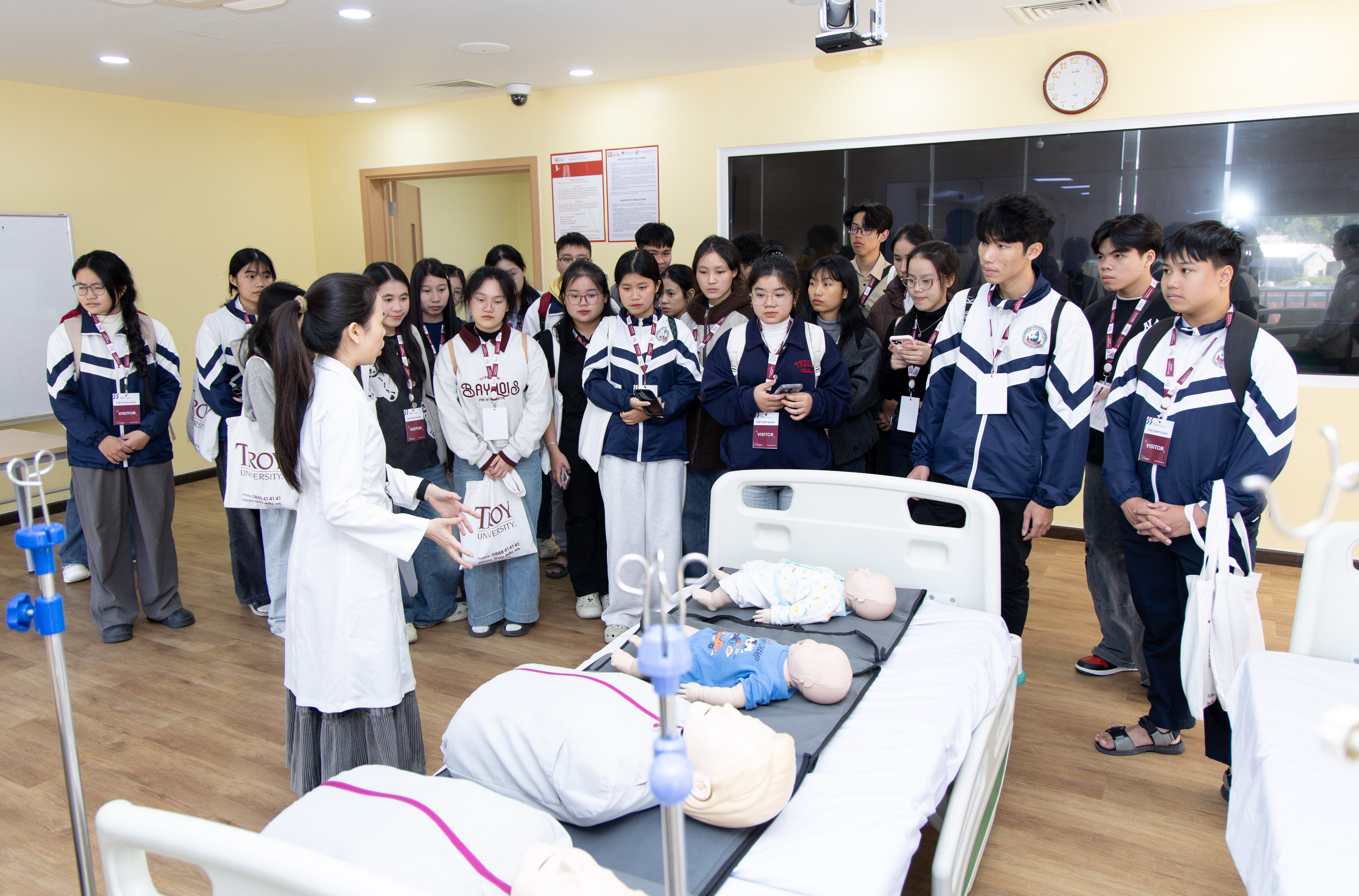 Trong không khí sôi nổi của mùa định hướng nghề nghiệp, Trung tâm Thực hành Mô phỏng Y khoa đã chào đón đoàn học sinh đến từ nhiều trường THPT đến tham quan môi trường đào tạo y khoa hiện đại, một trạm dừng chân trong chương trình University Campus Tour của University Campus Tour của Troy University Danang, chương trình liên kết giữa Đại học Troy, Hoa Kỳ và Đại học Duy Tân, Việt Nam.