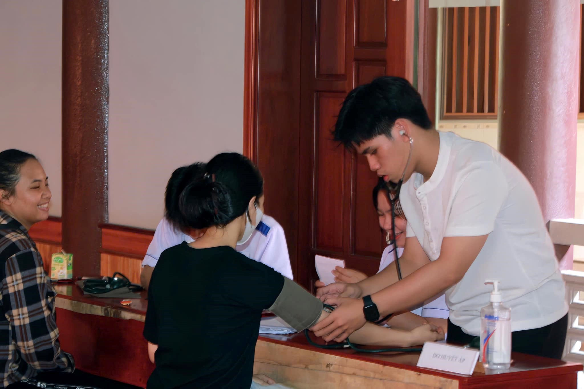 Các bạn đoàn khoa đo huyết áp cho người dân