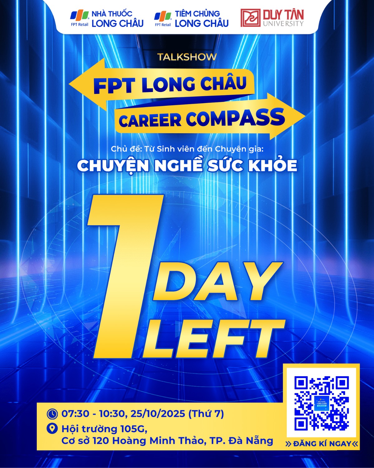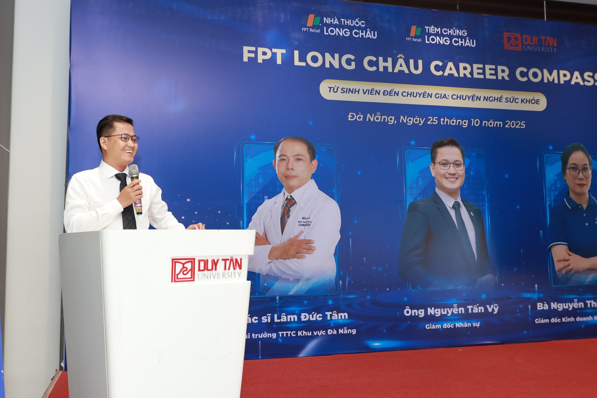 Sáng ngày 25/10/2025, tại hội trường 105G - Đại học Duy Tân - cơ sở 120 Hoàng Minh Thảo, chương trình FPT LONG CHÂU CAREER COMPASS - "Từ Sinh viên đến Chuyên gia: Chuyện nghề sức khỏe" đã diễn ra thành công tốt đẹp.