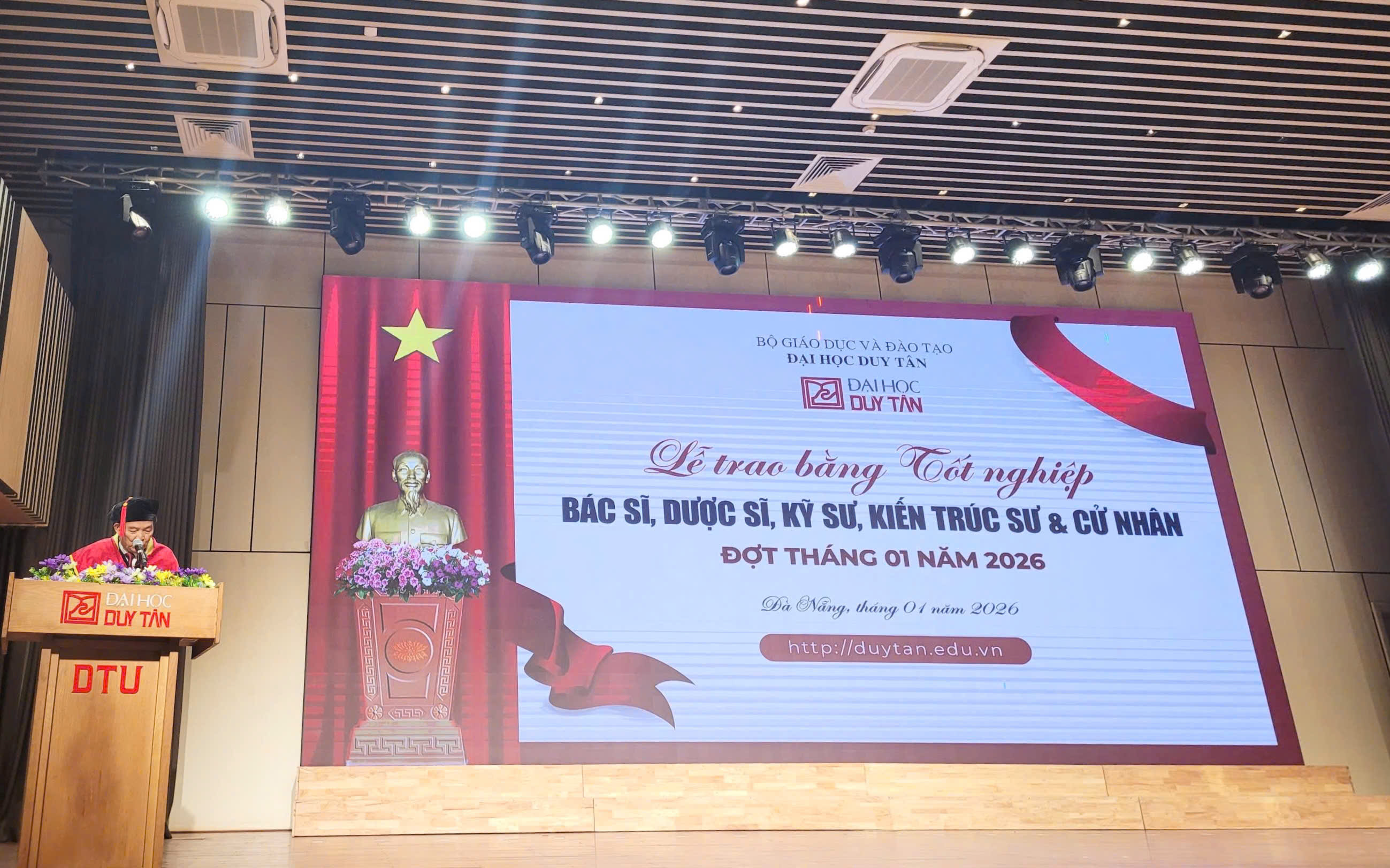 Ngày 16/01/2026, lễ tốt nghiệp của sinh viên Đại học Duy Tân nói chung và sinh viên khoa Dược – Trường Y Dược, Đại học Duy Tân nói riêng đã diễn ra trong không khí trang trọng, ấm áp và đầy xúc động. Buổi lễ đánh dấu cột mốc quan trọng, không chỉ khép lại những năm tháng học tập miệt mài, mà còn là khoảnh khắc thiêng liêng để mỗi sinh viên nhìn lại hành trình trưởng thành của chính mình.