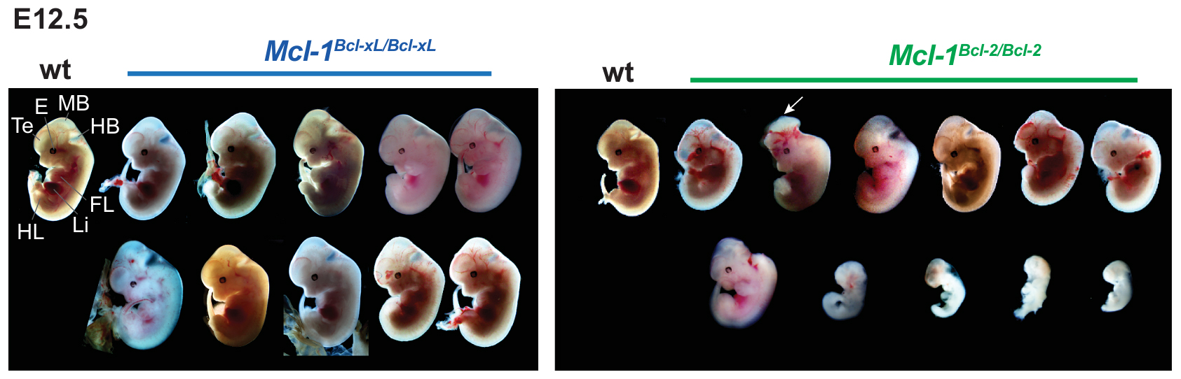 Hình 1. Hình ảnh phôi chuột wt và đột biến gene MCL-1.
