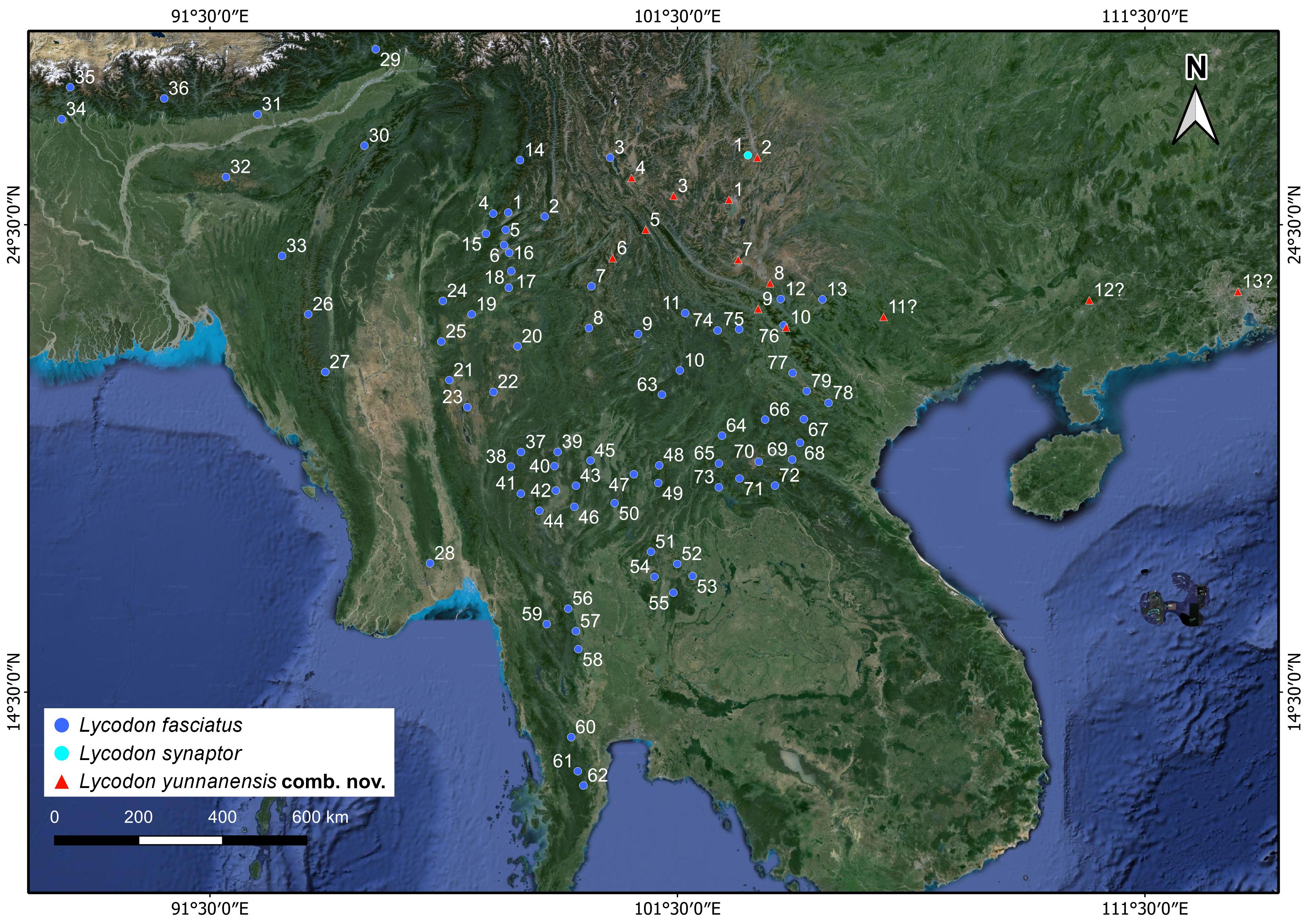 Nguồn tham khảo: Vogel et al. (2024). Solving of the long-term question: resurrection of Dinodon yunnanensis Werner, 1922 (Squamata: Colubridae: Lycodon)