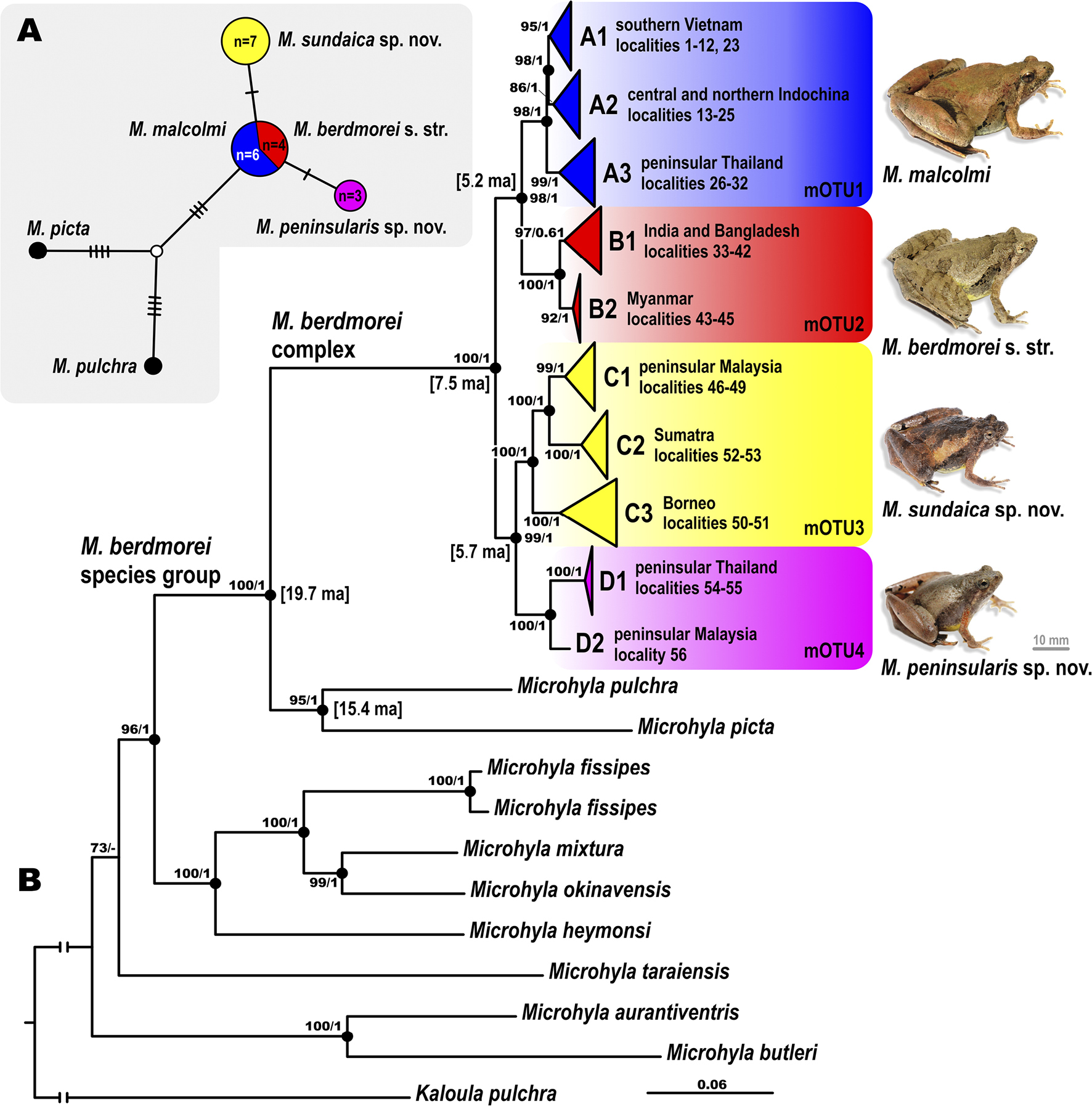 Dựa trên phân tích tích hợp: hình thái học, sinh học phân tử, âm sinh học, nòng nọc, nghiên cứu này đã giới hạn phân bố loài Microhyla berdmorei (Blyth) sensu stricto tại khu vực Đông Bắc Ấn Độ, Bangladesh và Myanmar. Bên cạnh đó, hồi phục loài Nhái bầu Mao com Microhyla malcolmi Cochran, 1927 phân bố ở khu vực bán đảo Malaysia, Thái Lan, Lào, Campuchia và Việt Nam. Đặc biệt trong đó, mô tả mới hai loài thuộc nhóm loài này tên là: