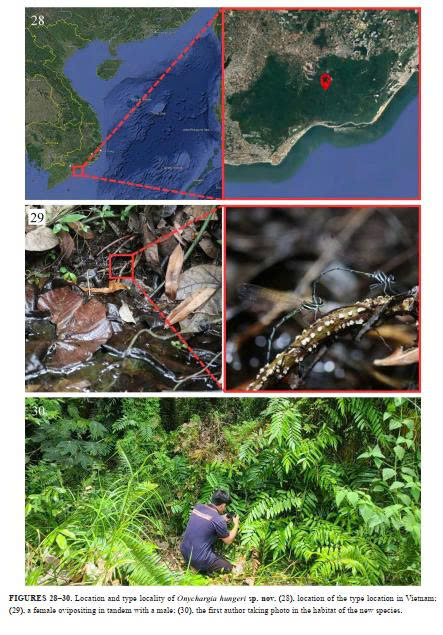 Nguồn: Tran, M.K., Huong, L.T.T. & Phan, Q.T. (2025) Notes on the genus Onychargia Selys, 1865 (Odonata: Zygoptera: Platycnemididae) with description of O. hungeri sp. nov. from southern Vietnam. Zootaxa, 5729 (4), 519–534. https://doi.org/10.11646/zootaxa.5729.4.2