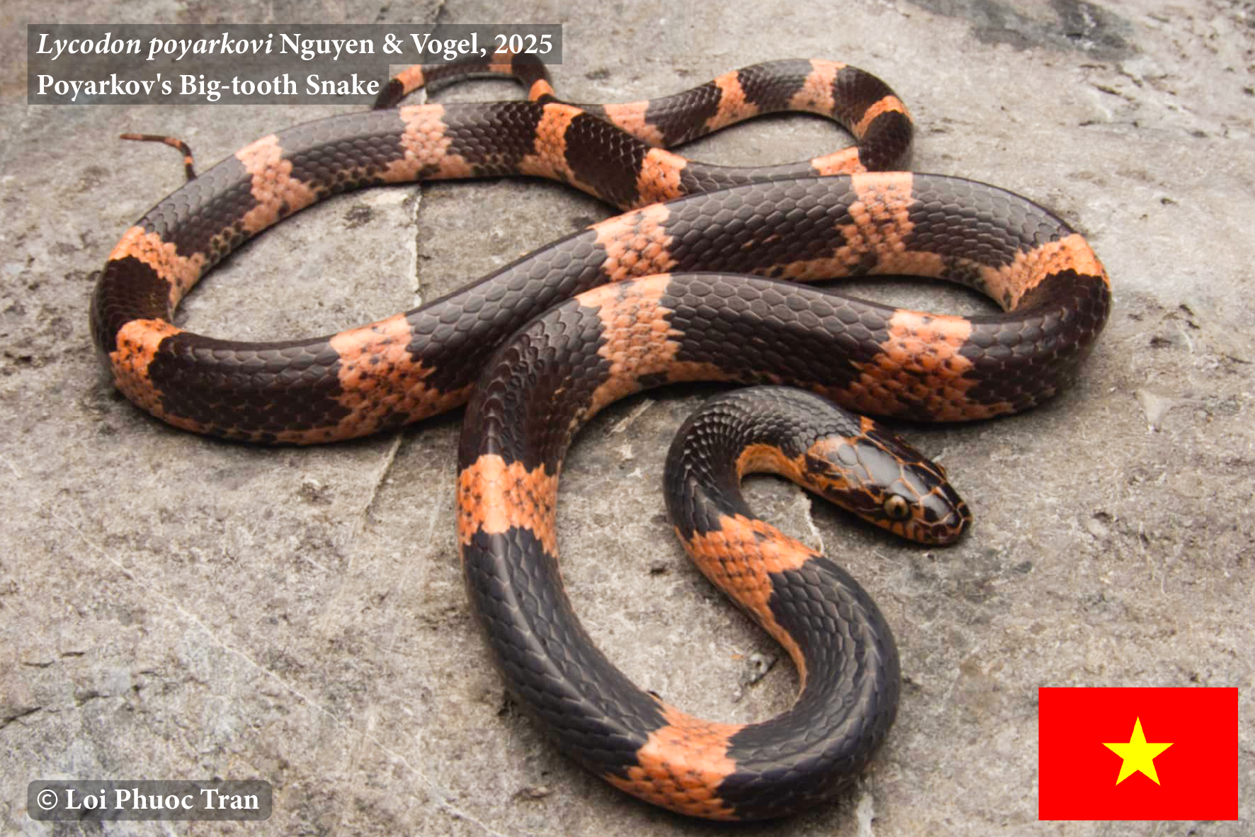 Rắn khuyết Trường sơn_Lycodon poyarki Nguyen & Vogel 2025 (Poyarkov’s Big-tooth Snake), một loài rắn mới được phát hiện và mô tả tại miền Trung Việt Nam