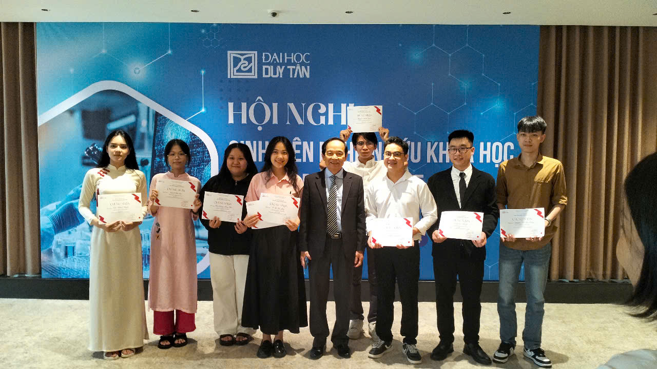 Ngày 6/6/2025, Hội nghị Sinh viên nghiên cứu khoa học Đại học Duy Tân năm 2025 đã diễn ra sôi nổi với sự tham gia của 24 đề tài được chọn đến từ nhiều lĩnh vực khác nhau. Đây là một sự kiện thường niên quan trọng nhằm tôn vinh tinh thần học thuật, khơi dậy đam mê nghiên cứu và sáng tạo trong sinh viên Đại học Duy Tân. Trong không khí học thuật đầy năng lượng ấy, nhóm nghiên cứu dưới sự hướng dẫn của TS. Đinh Phong Sơn và ThS. Trần Châu Mỹ Thanh đã xuất sắc giành được Giải Nhất trong khối ngành Khoa học Sức khóe với đề tài: “Xác định mục tiêu chẩn đoán phân tử microRNA mới và vai trò chưa được khám phá trong sinh lý bệnh đột quỵ thông qua hồ sơ biểu hiện giải trình tự thông lượng cao”.