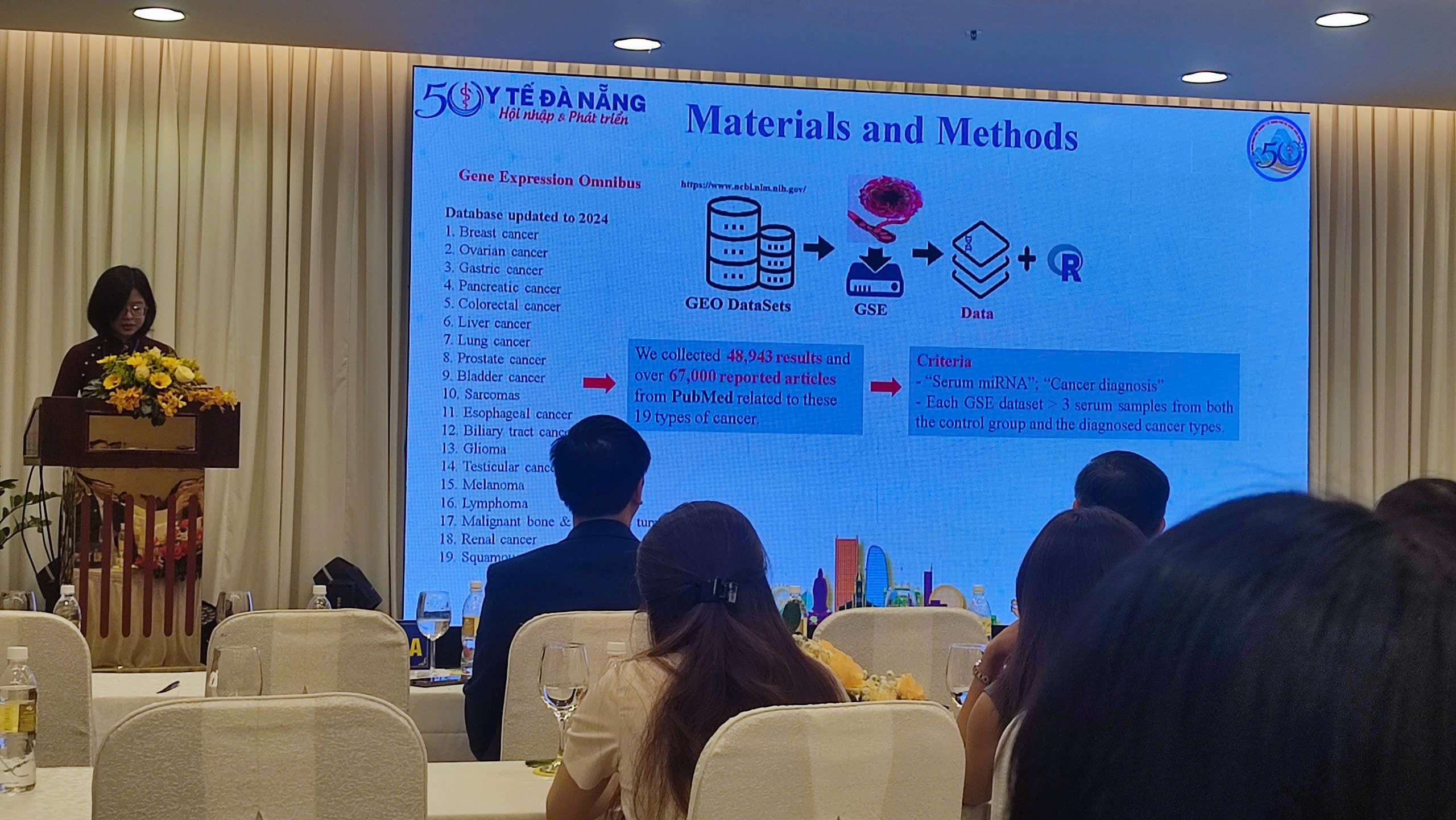 Trong bối cảnh ngành y học đang chuyển mình mạnh mẽ với các ứng dụng của công nghệ sinh học phân tử, Trung tâm Sinh học Phân tử – Đại học Duy Tân tiếp tục khẳng định vai trò tiên phong của mình tại Hội nghị Khoa học Ngành Y tế Thành phố Đà Nẵng năm 2025, diễn ra vào ngày 18 tháng 4. Tại sự kiện khoa học lớn nhất trong năm của ngành y tế địa phương, trung tâm đã mang đến một nghiên cứu ấn tượng và đầy tiềm năng: “Potential diagnostic value of serum microRNAs for 19 cancer types”.