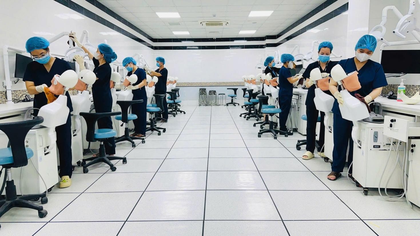 Hình 2. Nhân viên Trung tâm đang vệ sinh tại phòng Mô phỏng nha khoa