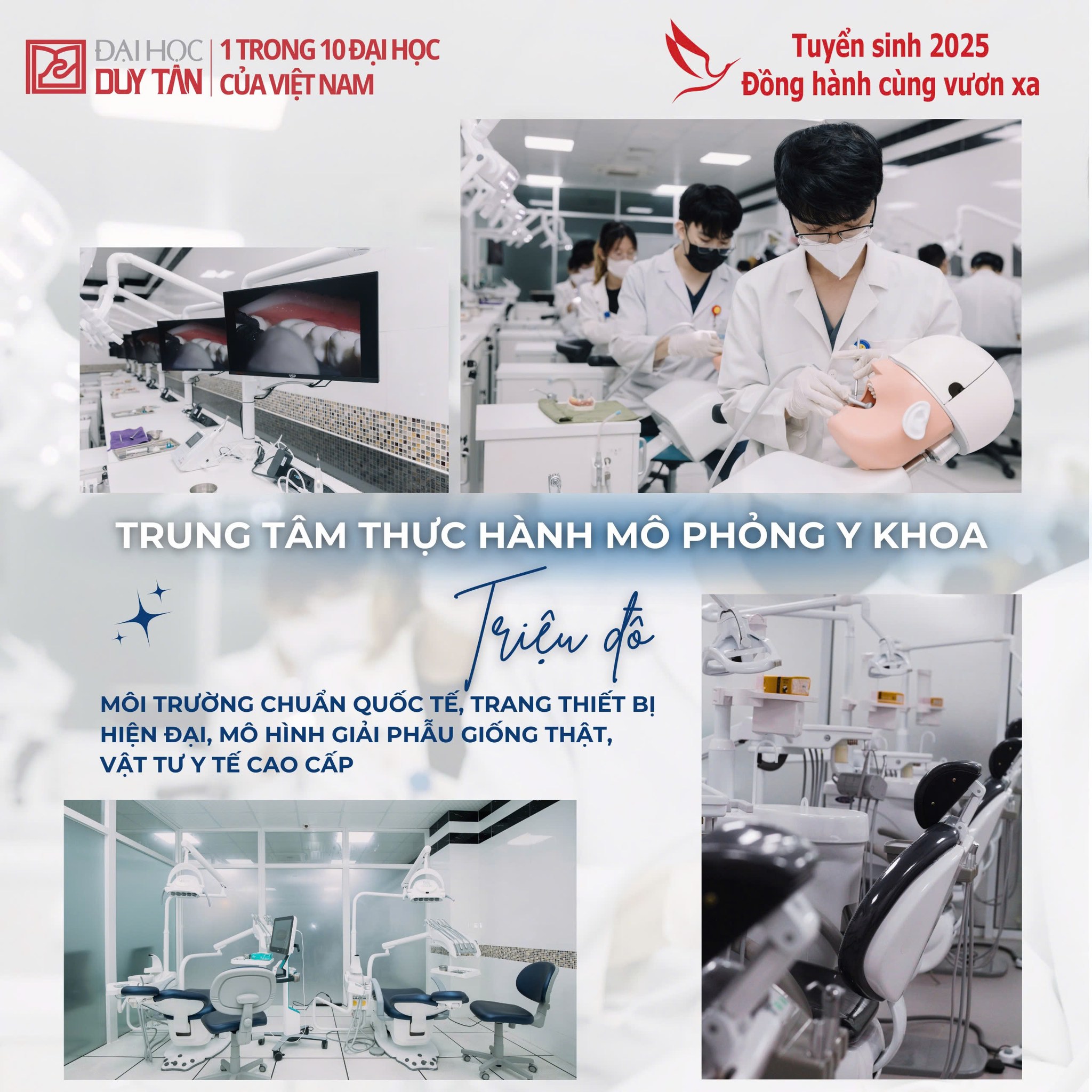 Trong bối cảnh ngành Y nói chung và ngành Răng Hàm Mặt nói riêng đang không ngừng đổi mới nhằm nâng cao chất lượng đào tạo, việc ứng dụng công nghệ mô phỏng hiện đại vào giảng dạy thực hành ngày càng trở nên cấp thiết. Nhằm đáp ứng nhu cầu học tập, rèn luyện kỹ năng chuyên môn một cách an toàn và hiệu quả cho sinh viên, Trường Y Dược Đại học Duy Tân đã triển khai xây dựng hệ thống phòng thực hành mô phỏng dành cho sinh viên Răng Hàm Mặt, đây là một bước tiến quan trọng trong đào tạo nha khoa hiện đại.